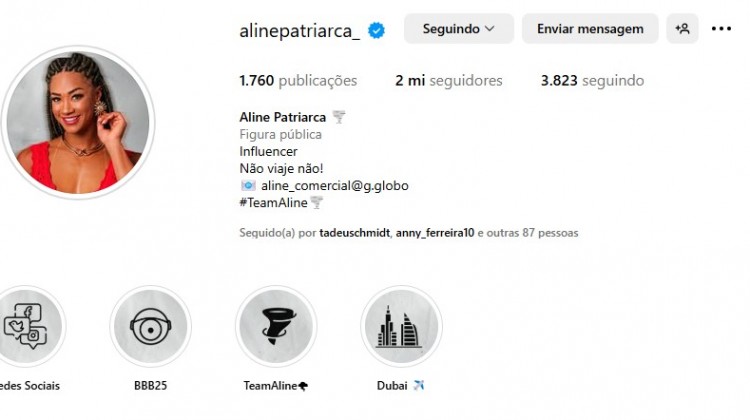 Aline, do BBB 25, atinge 2 milhões de seguidores