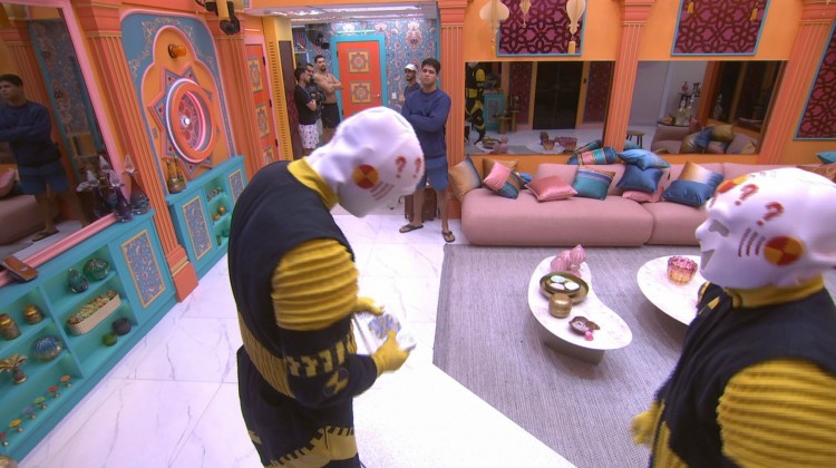 Após Diego Hypolito finalizar o Castigo do Monstro mais uma vez, neste sábado (5), os dummies voltaram para a casa do BBB 25 para recolher as cartas e a mesa usada para a dinâmica. Ao entrarem, eles se deparam com uma brincadeira feita pelos brothers.